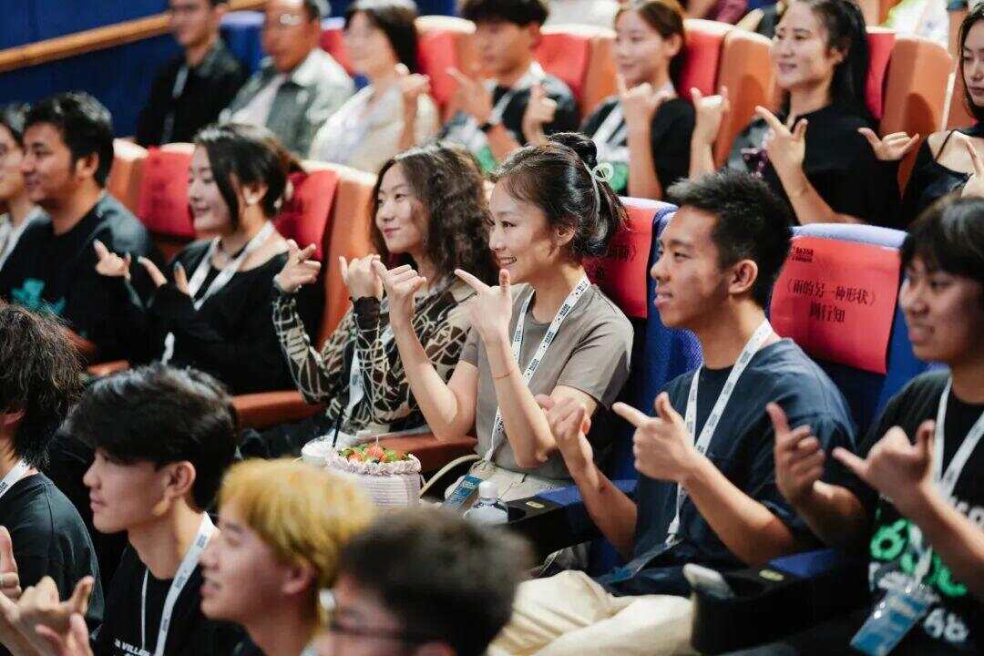这份来自贾家庄的用心,让我特别感动。他们真的花了很多心思去了解每一位导演。我的短片首映日正好是我的生日,起初还以为只是巧合。直到电影放完,灯光亮起,工作人员和志愿者们一起捧着蛋糕上台,全场齐声为我唱生日歌的那一刻,我才恍然大悟——原来这一切都是他们精心安排的。
