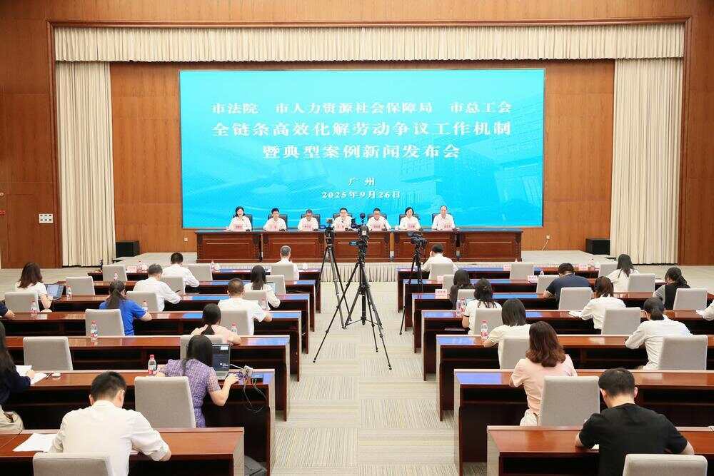 凝聚合力护权益!9月26日下午,广州市中级人民法院、广州市人力资源和社会保障局、广州市总工会联合举办新闻发布会,共同签署《关于联动高效化解劳动争议案件(纠纷)的工作意见》(以下简称《联动工作意见》),标志着广州“法院+人社+工会”劳动争议多元化解联动机制正式建立并运行。