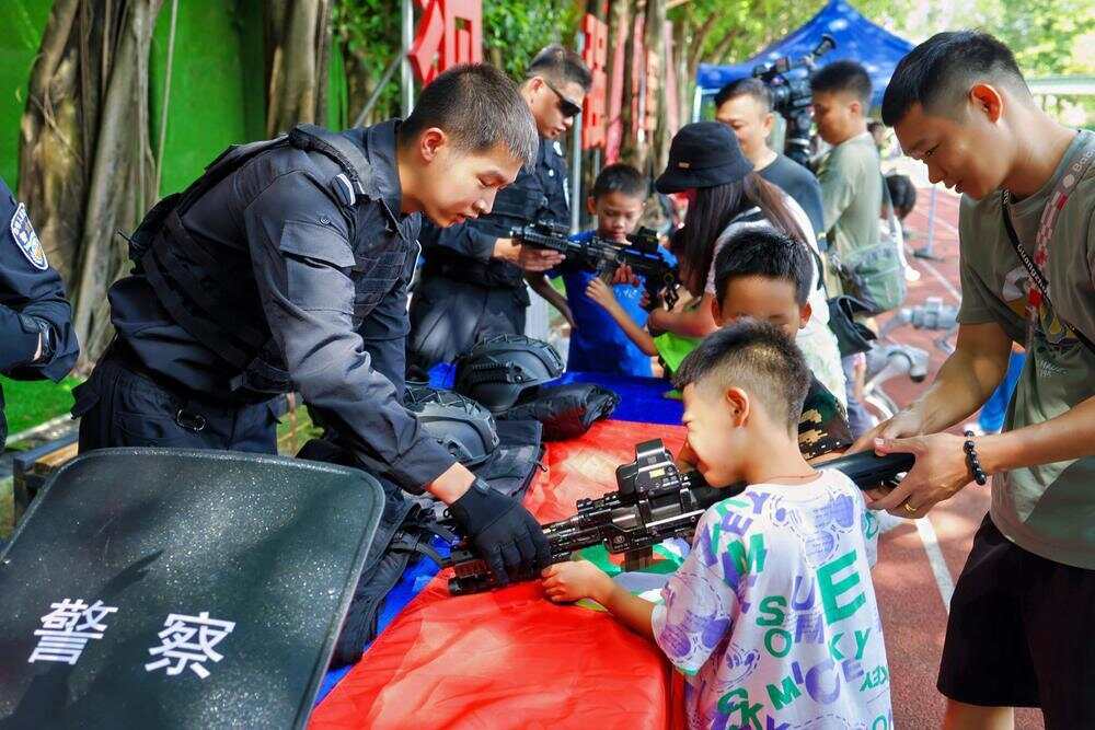 这里“虚实相生”:特种装甲车、防弹头盔、防弹衣、防弹盾牌、破拆装备等特种装备,让市民亲手感受守护城市安全的“硬核”力量;模拟射击、兵棋推演项目,让参与者在游戏中学习军事知识;无人机激光射击与无人机搬运体验,展现科技在国防领域的应用,大家踊跃参与,现场欢声笑语不断。