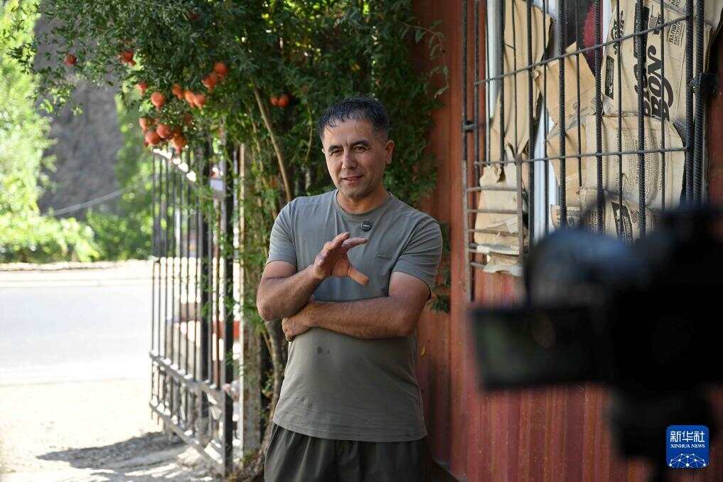 9月11日,在塔吉克斯坦卡拉依洪姆村附近,村民基什瓦尔接受新华社记者采访。 新华社记者 李任滋 摄