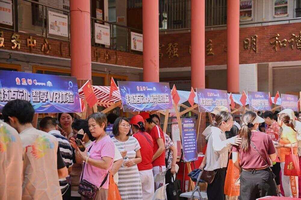 其中,由广东邮电职业技术学院团队带来的“智享VR体验”摊位备受长者青睐,科普志愿者引导长者通过VR游戏、VR展馆、VR全景等多种形式,感受虚拟世界的奇妙之处。同时,在“AI生图”的趣味互动环节中,长者们直观地体会到科技赋能带来的便捷与乐趣。