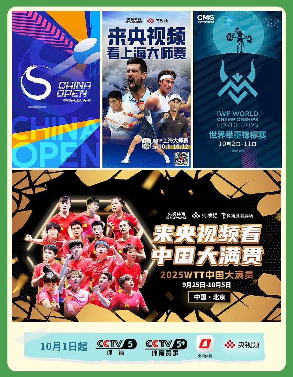 精彩赛事,激情无限!《2025年中国网球公开赛》《2025年世乒联大满贯赛(中国站)》《2025年ATP1000男子网球大师赛(上海赛)》《2025年世界举重锦标赛》等黄金赛事接连开赛,让体育迷畅享运动的无穷魅力。