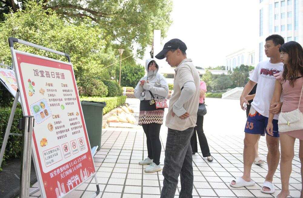 10月1日,广东佛山顺德,市民游客在浏览饭堂每日菜谱。新华社记者 卢汉欣 摄