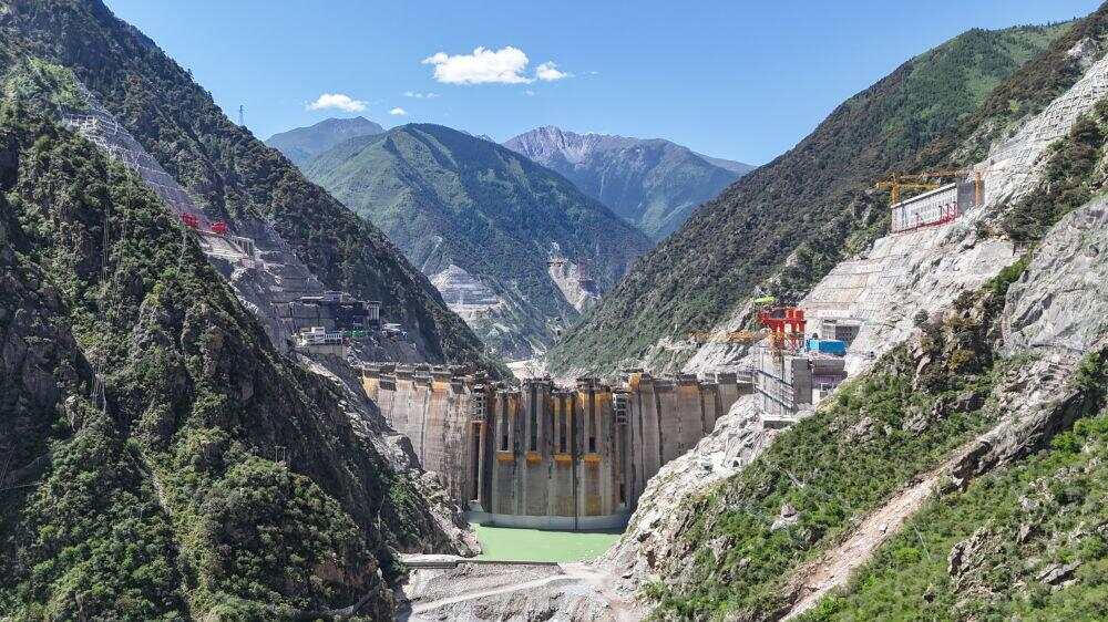 面对高寒缺氧的恶劣环境和紧张的工期,建设者们创新应用“智慧大坝”技术,引入数字孪生、智能温控等先进工艺,创下了月浇筑13万立方米的施工纪录。