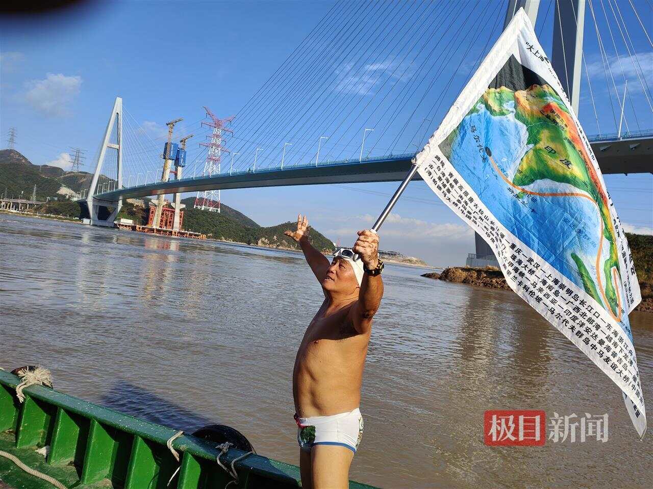 “东海水好咸啊!”鲍政斌一手举旗,一手挥臂击水,在大海里畅游了一小时,才依依不舍地上了岸。“之前许多海岸线都无法游,这是我从崇明岛出发半个月来,游得最尽兴的一次。”他感叹道。