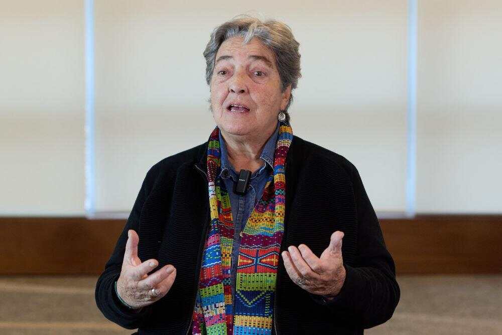 9月25日,乌拉圭知名社会活动家、记者露西·加里多在乌拉圭首都蒙得维的亚接受新华社记者采访。新华社记者 孟鼎博 摄
