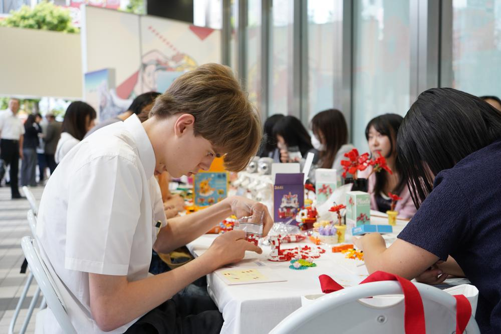 曾被改编成日语版《遥远的梦》的粤语流行歌曲《海阔天空》唱响舞台,引发现场日本观众共鸣。现场还设置“岭南非遗体验区”:广东剪纸、佛山木版年画、广绣、潮州工夫茶等岭南非遗为观众营造出“可看、可品、可感、可玩”互动体验场景。