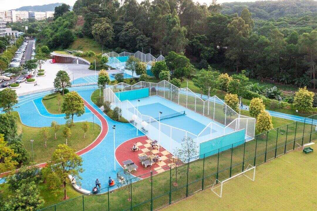 公园充分体现“全龄友好”理念,园区设有11人制标准足球场、4个篮球场、2个网球场和5张乒乓球桌,满足不同运动爱好者的需求。