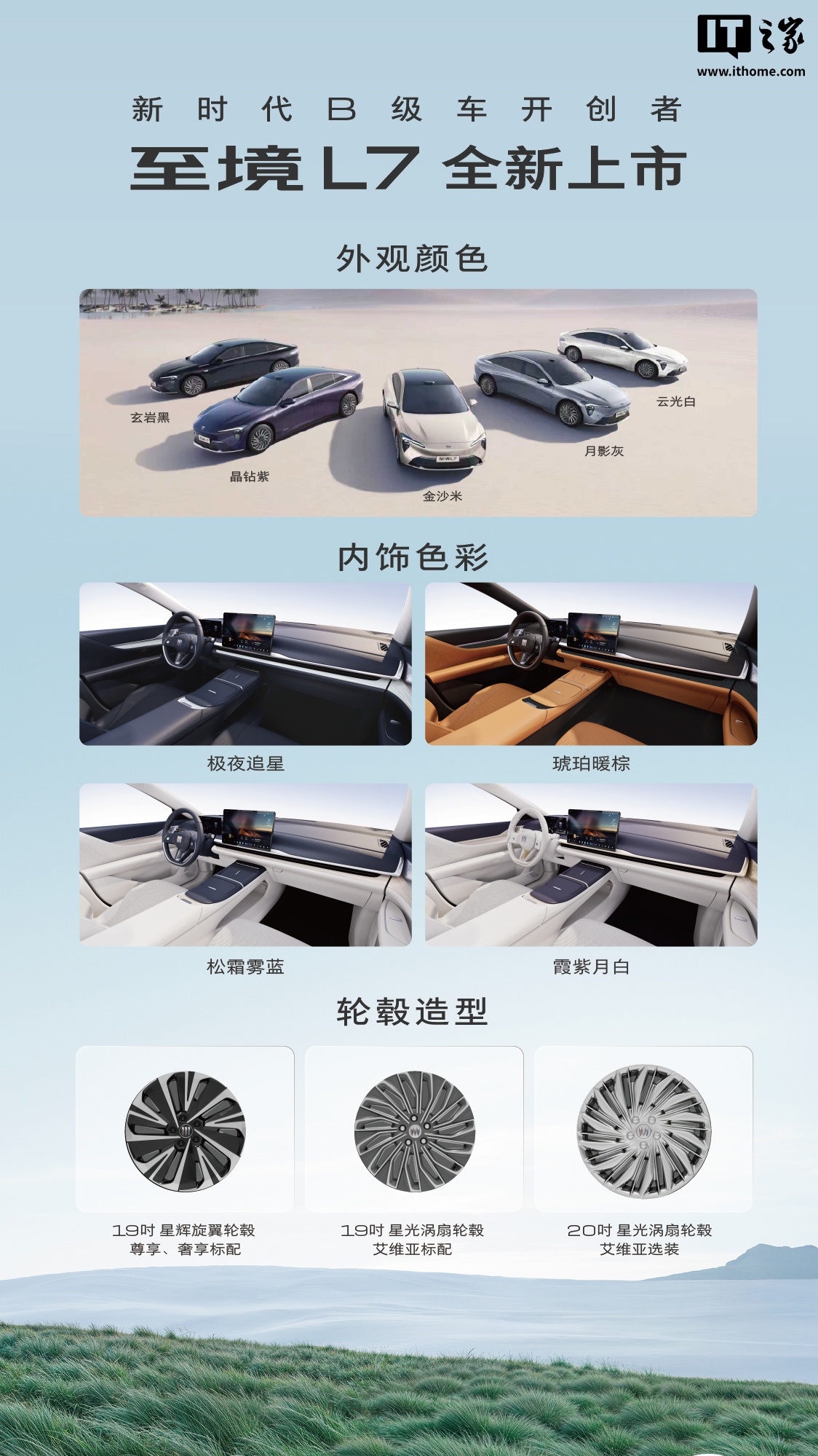 至境L7在配置上,主驾区采用15.6英寸智能中控屏+10.25英寸全液晶仪表盘,并配合同级唯一的50英寸AR-HUD。全球首发搭载高通最新SA8775P芯片,支持苹果CarPlay、华为HiCar以及CarLink手机互联。动力方面,至境L7采用了“真龙”增程式混动系统,电机功率252kW,满电状态下百公里加速仅需5.9秒。续航方面,百公里综合油耗0.5L,纯电续航里程达到302km,综合续航里程可达1420km,并支持130kW快充,30%~80%补能仅需18分钟。
