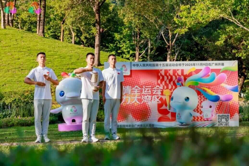 10月15日,第十五届全运会火炬与火种宣传展示活动走进环南昆山—罗浮山县镇村高质量发展引领区(以下简称“环南昆山—罗浮山引领区”),在美丽的增城区派潭镇白水寨景区向市民展示第十五届全运会火炬与火种。