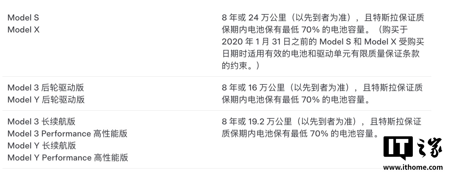 根据特斯拉中国的规定,Model 3 / Model Y在8年或16万公里内、Model 3长续航/3P及Model Y长续航/YP在8年或19.2万公里内、Model S/X在8年或24万公里内,如果电池衰减超过30%,且损坏原因非人为造成,可以申请免费更换电池。
