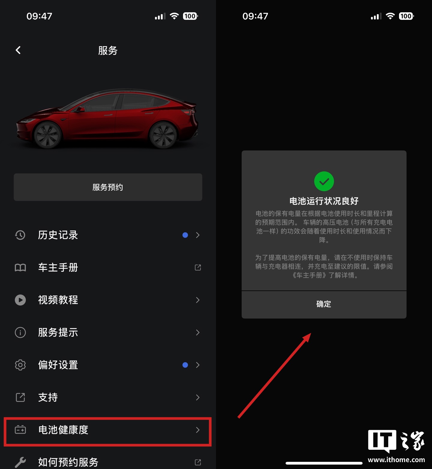 10月17日,特斯拉对其Tesla App进行了更新,用户现在可以在App的“服务”部分直接查看汽车的电池健康度。尽管如此,具体的健康度百分比仍需通过App内的在线客服获取。用户可通过点击App右上角的“消息”图标,选择“在线客服”,并输入“查询电池健康度”来接收电池健康度报告。