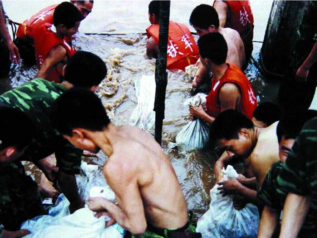 1998年8月,长江流域发生特大洪水,“刘老庄连”随团紧急奔赴灾区参加抗洪抢险任务。