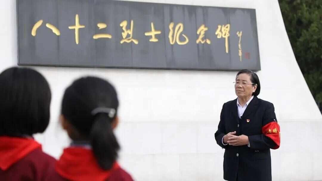 2025年,99岁的抗战老兵于跃书来到八十二烈士碑前
