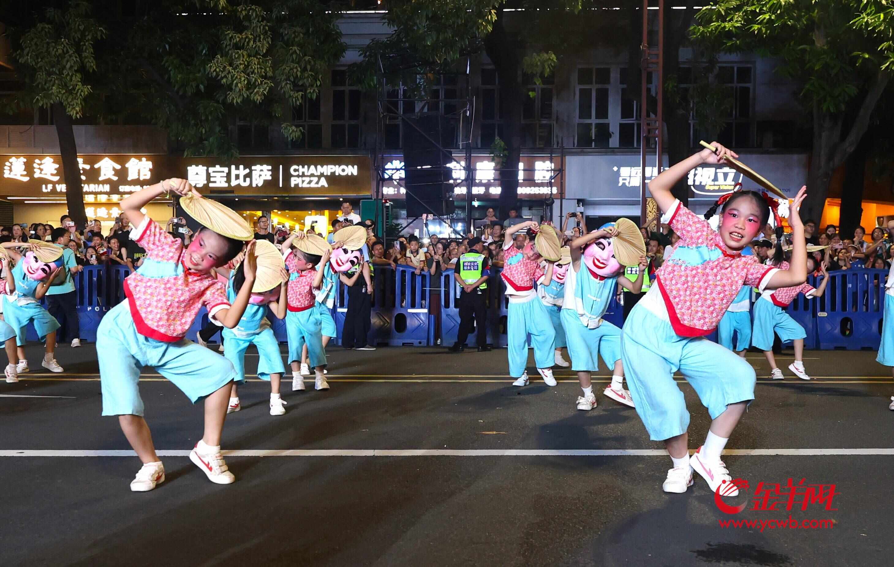 今年秋色巡游中,汉服爱好者与国风达人组成“国风当潮·秋色同游”方阵;禅城区菁华舞苑的《灯绘岭南》将传统鱼灯与现代舞美巧妙结合,营造出惊艳的视觉景观。最具佛山特色的是,在“小手拉大手 大城巧工匠”彩车后,47名来自两所村级小学的师生,在固定表演点展示蔡李佛拳与咏春拳的武术对话,并在街舞节奏中完成“快闪”演绎,让传统功夫焕发青春气息。