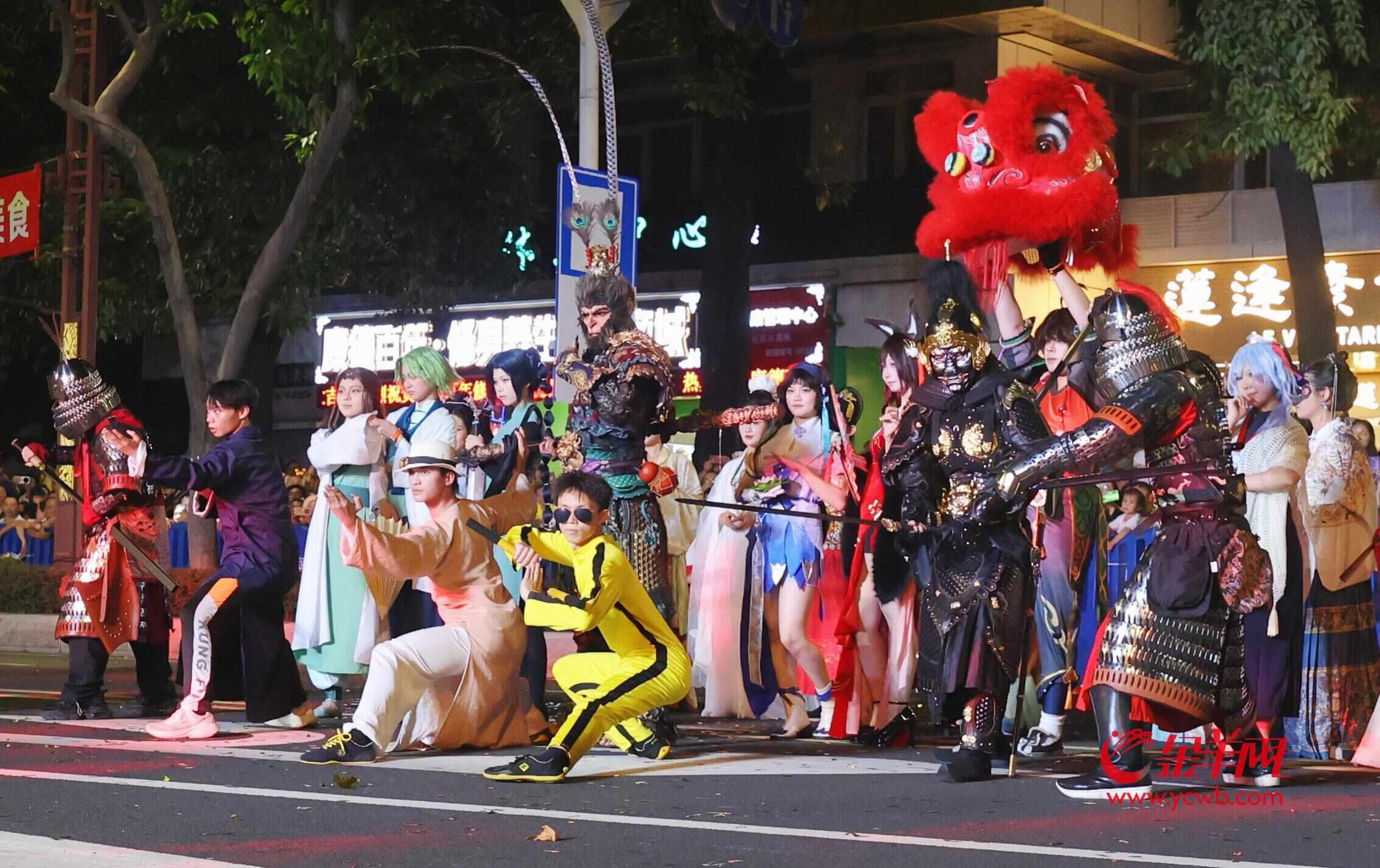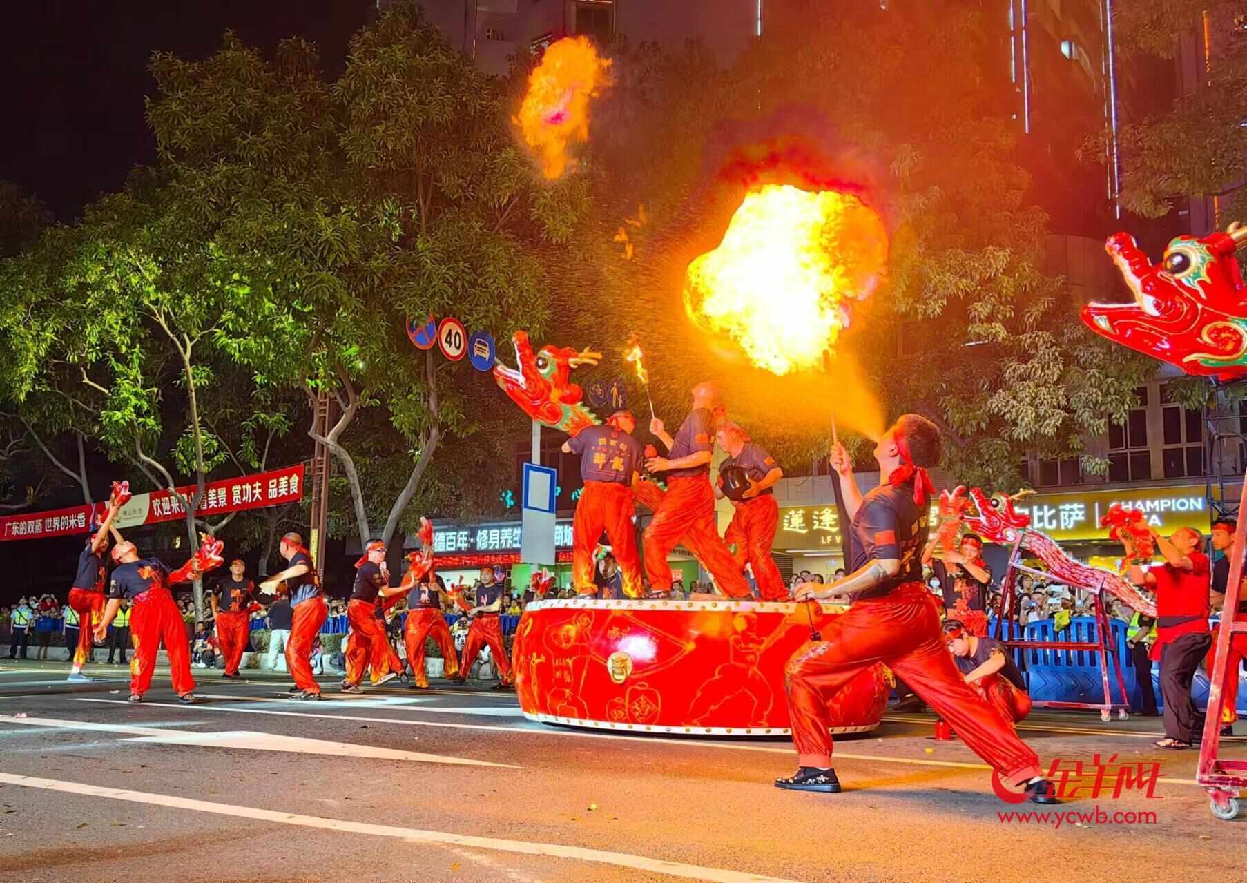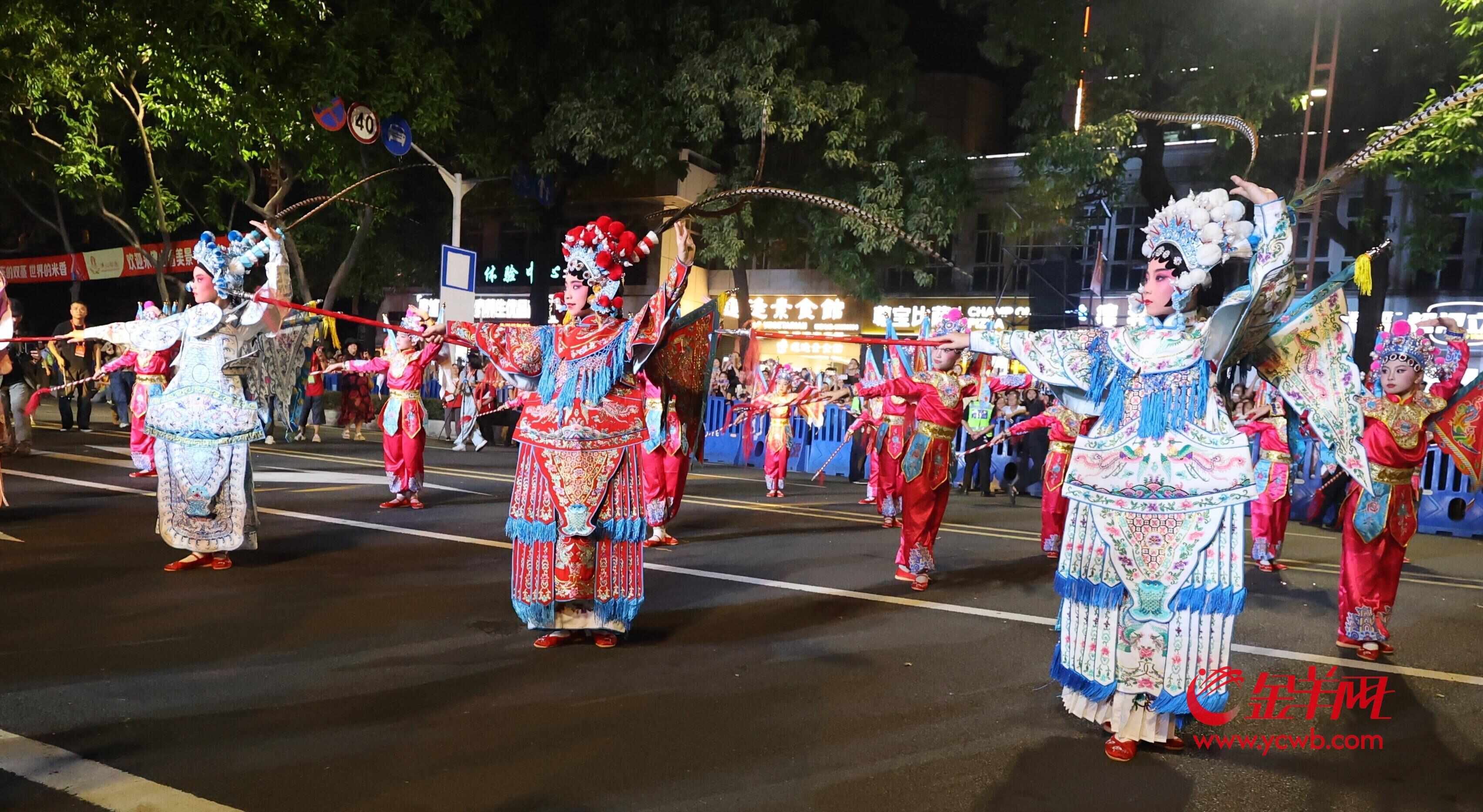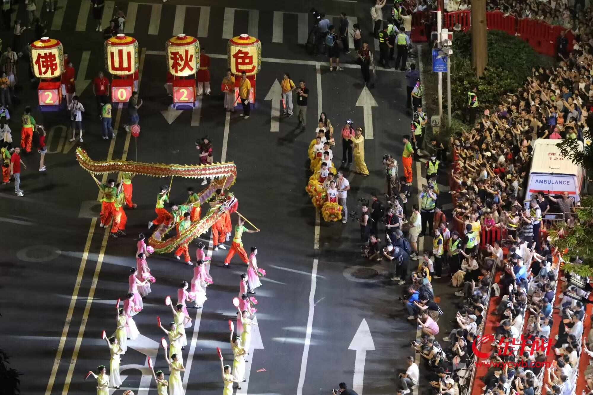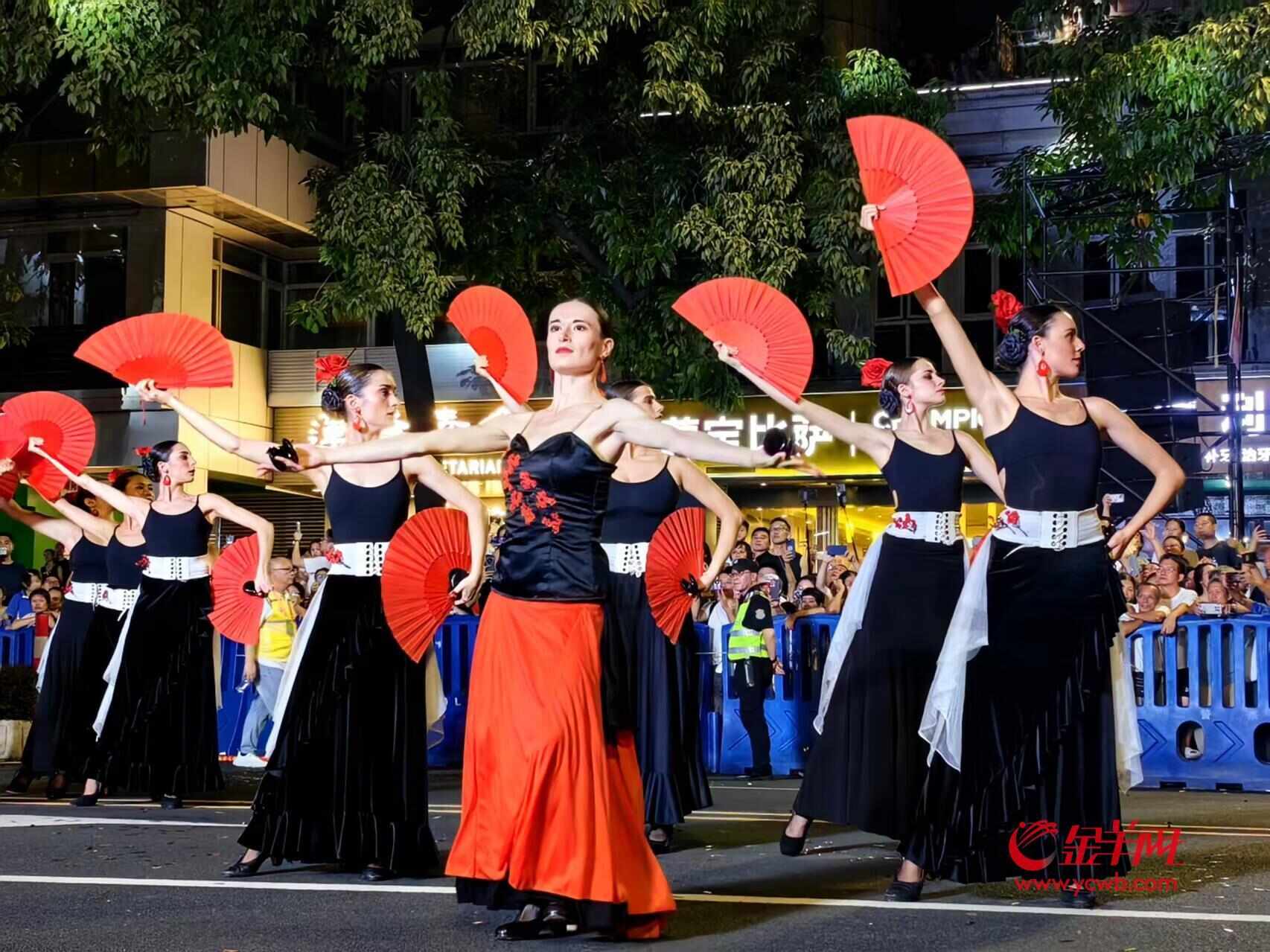秋夜佛山,灯火如昼。巡游队伍中,20辆秋色花车引领前行,琳琅满目的佛山灯色作品点亮街头。镇安小学与民乐小学的师生以一场蔡李佛拳与咏春拳的“功夫对话”,展现“百千万工程”推动非遗进校园的丰硕成果。异域风情亦未缺席——来自西班牙的舞者踏着《激情弗拉明戈》的节奏翩然起舞,地中海特有的热情与岭南秋意在此刻深情相拥。