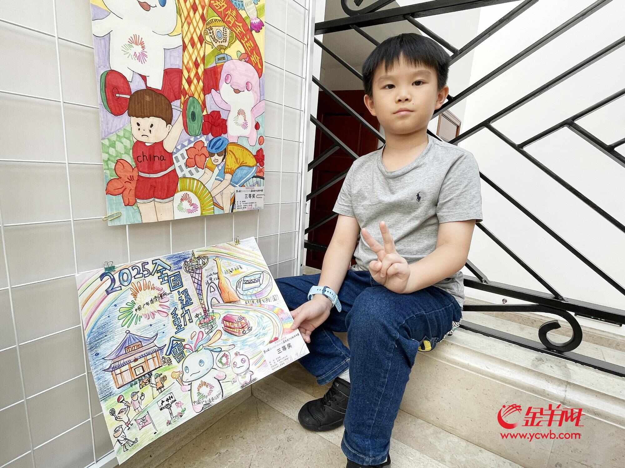 来自香港荃湾天主教小学的苗承霖从幼儿园开始学习画画,在此次比赛中,他的作品《同心全运会》获得了三等奖。