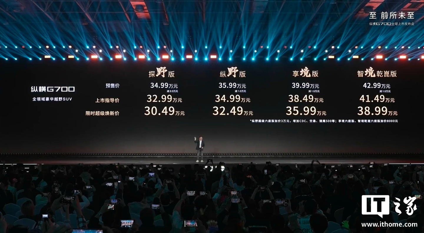 10月19日,奇瑞旗下捷途品牌推出了全新车型捷途纵横G700,官方指导价为32.99万至41.49万元,限时超级焕新价为30.49万至38.99万元。顶配车型特别配备了华为乾崑智驾ADS 4系统,并有至尊航行版,指导价为70万元。
