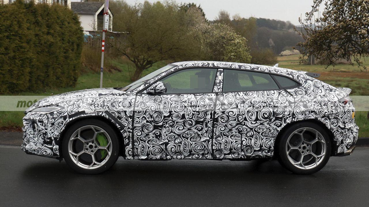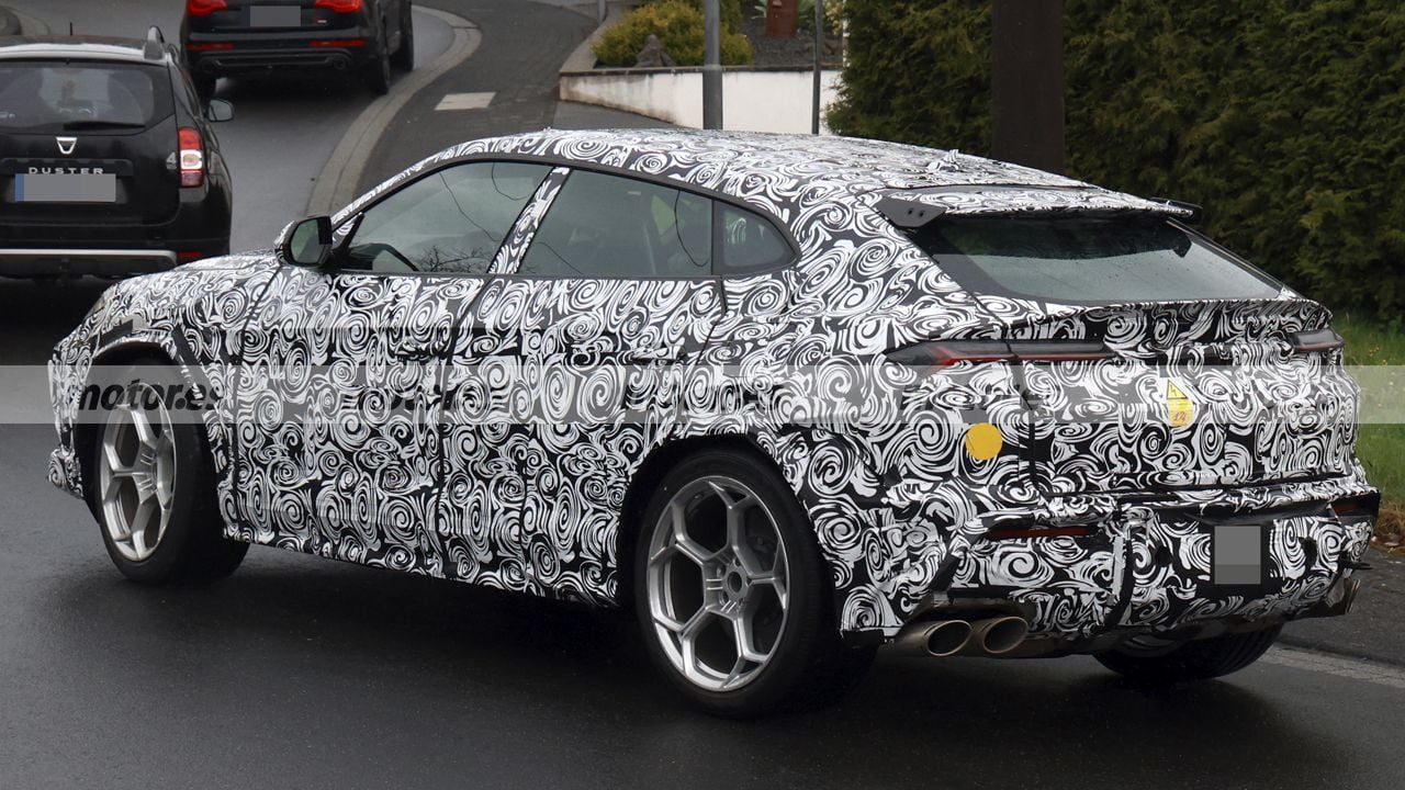 车辆尾部改动显著,Urus SE Performante采用了双扰流设计,一处位于尾灯上方为标配,另一处位于尾门顶部造型更为激进。后扰流板、车顶及第二扰流板均采用贴膜包覆,预计最终将使用碳纤维材质。排气口间的空气扩散器同样将由碳纤维打造。兰博基尼正耐心打磨这款车型,使其在高速弯中展现出无与伦比的动态表现。测试车配备了防滚架,预计量产车型不会保留这一配置。