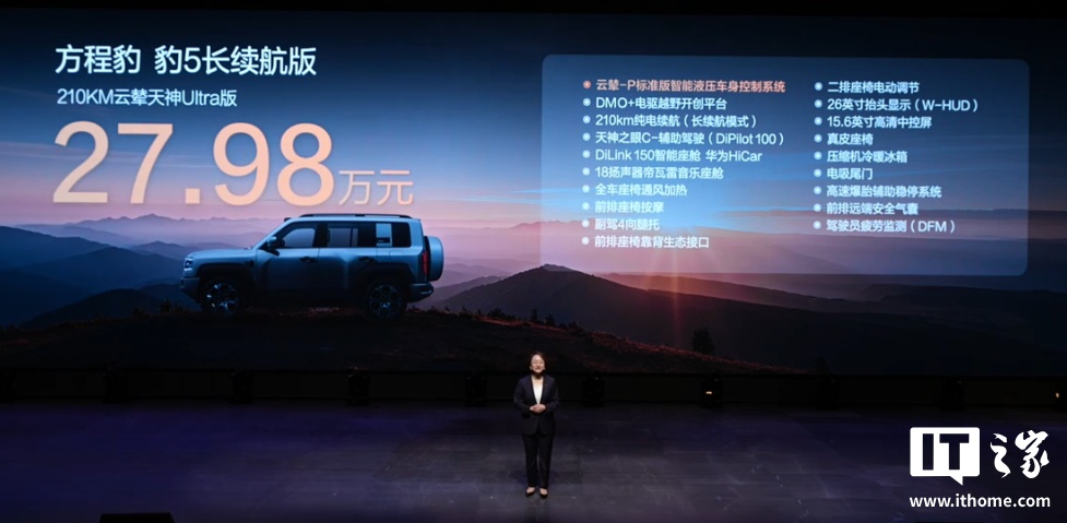 今日,比亚迪发布了两款新车型:方程豹豹5长续航版和豹8大五座版。豹5长续航版起售价26.98万元,提供多种配置版本,最高配云辇乾崑Ultra+版售价32.98万元。豹8大五座版起售价37.98万元,智勇旗舰五座版售价39.98万元。两款车型均升级了高速爆胎辅助稳停系统、DMO+、比亚迪智慧物联,支持OTA或线下升级,并新增生态接口,可连接BYD PAD转轴支架。