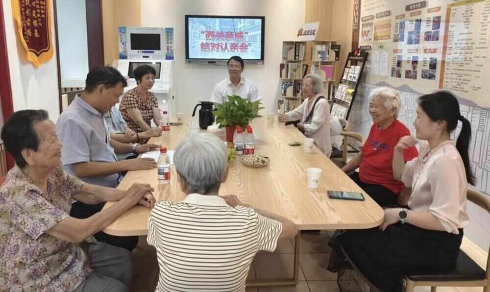 在议事角,还举行了“西关亲戚”结对认亲会,社区有爱心、乐于奉献的党员群众,与社区里的高龄独居老人等困难群体结成对子,提供日常帮助。