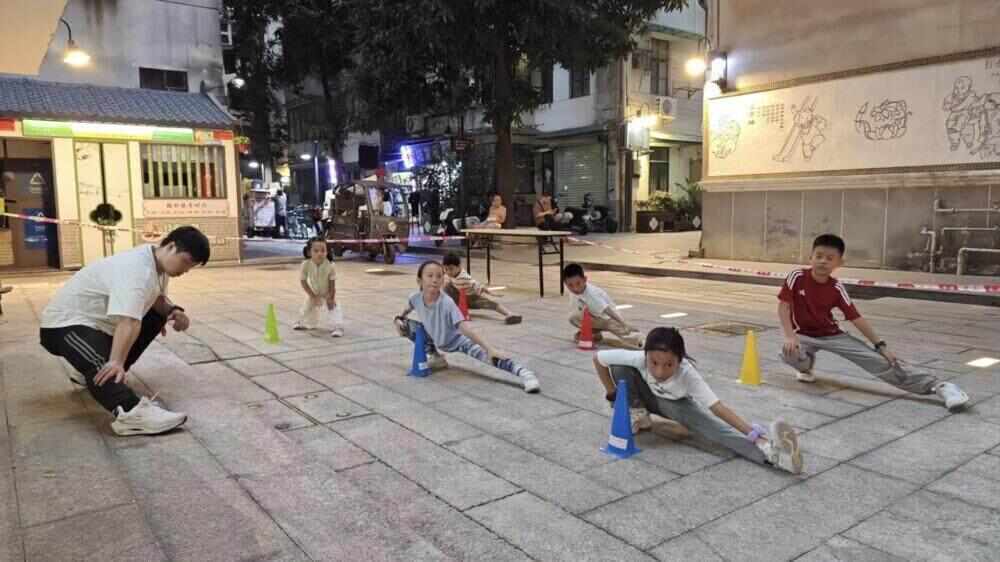 同时,邻里广场的“西关小健将”体能训练项目也在同步进行。社区邀请来自区体校的专业体育老师,带领孩子们进行科学有趣的体能训练。