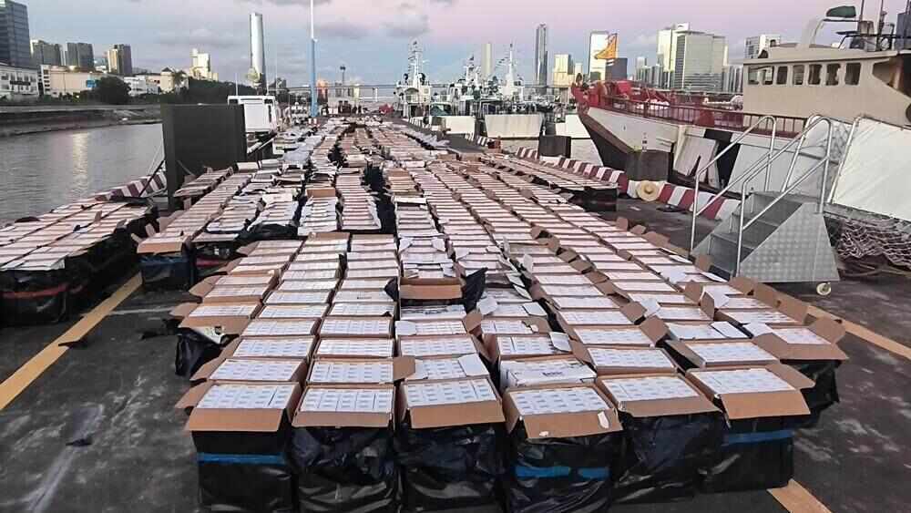 经与珠海市烟草专卖局共同清点查验,船上共装载有涉嫌走私国外品牌香烟约87万余条,涉案金额达1500余万元。目前,案件正在进一步侦办中。