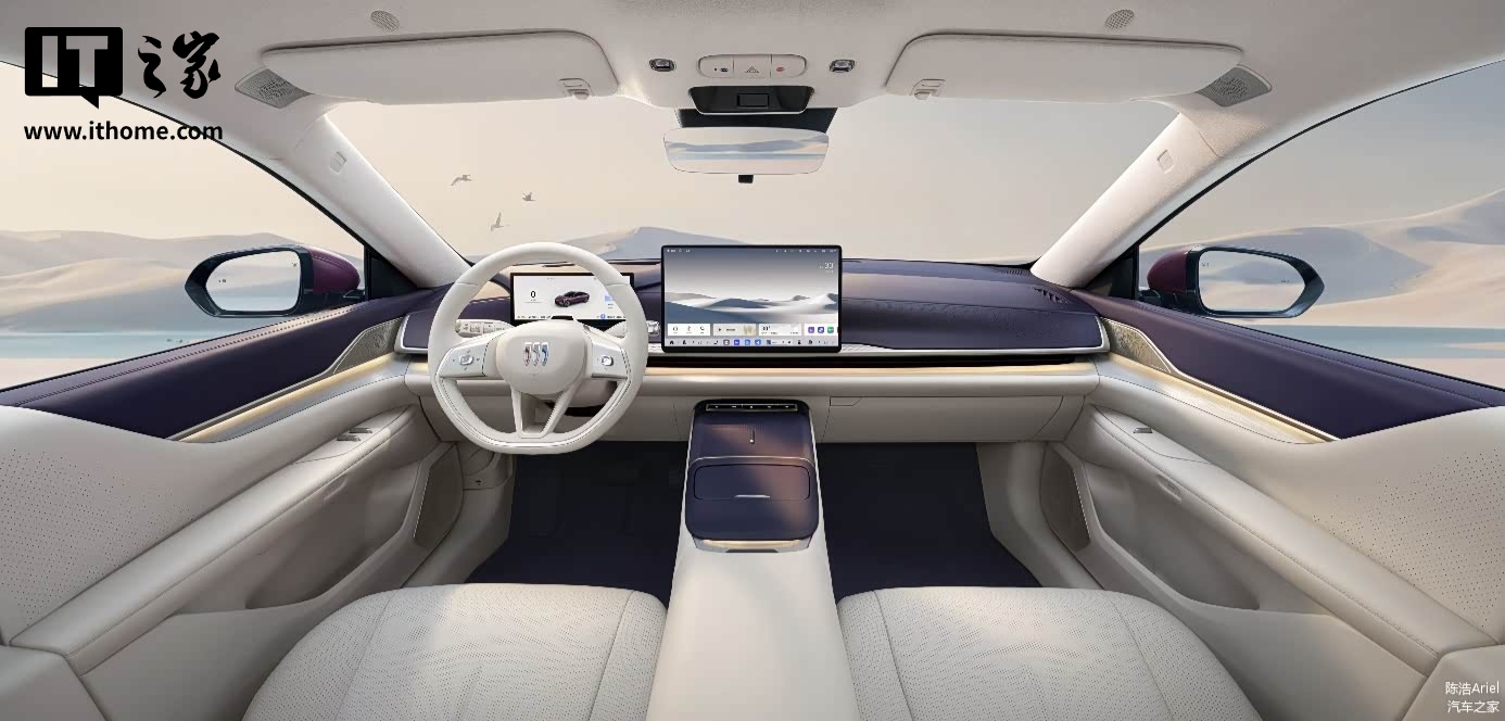 内饰方面,至境L7采用灰白色风格,配备10.25英寸液晶仪表和15.26英寸中控大屏,搭载高通SA8775P芯片,算力72 TOPS,支持分屏显示。车内还配有50英寸全景AR-HUD系统,可直接在挡风玻璃显示导航信息等。此外,车辆配备NAPPA真皮座椅,具备加热、通风和按摩功能,以及27扬声器Buick Sound音响系统。智驾方面,采用Momenta R6飞轮大模型,提供全场景辅助驾驶功能。