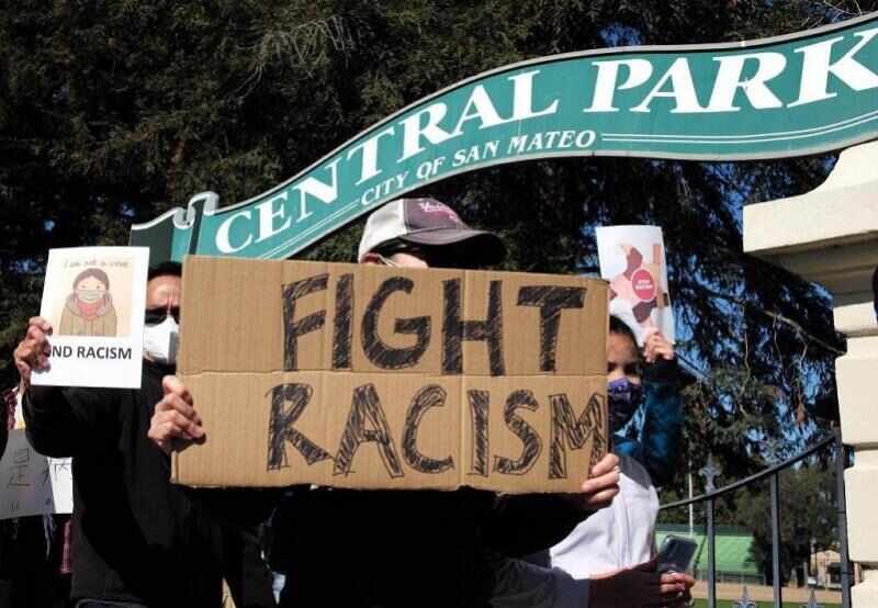2021年2月,美国加州旧金山,人们参加集会反对针对亚裔的歧视行为和仇恨犯罪。新华社发