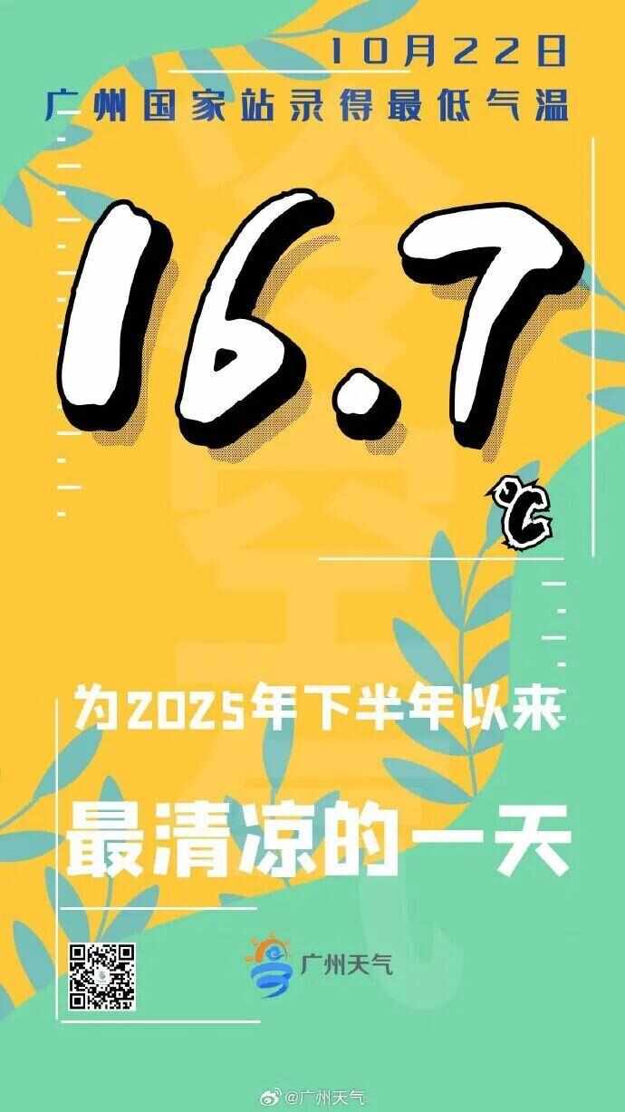 10月22日早晨,广州国家基本气象站录得16.7℃的下半年以来最低气温