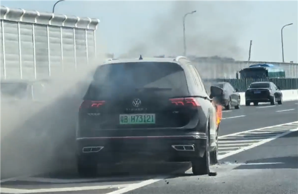 上海北翟路高架惊现途观L插混车起火 现场浓烟滚滚