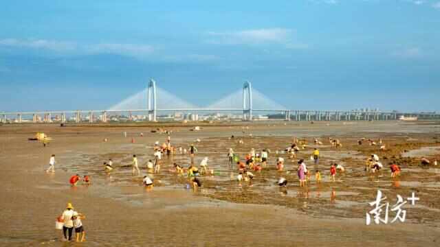 广东茂名陈村渔港退潮后,人们从四面八方赶过来,滩涂变得非常热闹。南方+记者 张鹏飞 摄