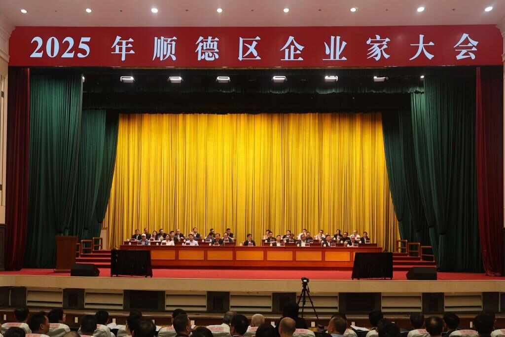 10月23日,2025年顺德区企业家大会召开。现场,除了佛山市委常委、顺德区委书记陈新文在主席台上主持大会外,其余均是各个领域的企业家。其中,美的集团执行总裁王建国、碧桂园控股总裁莫斌坐在陈新文两侧。
