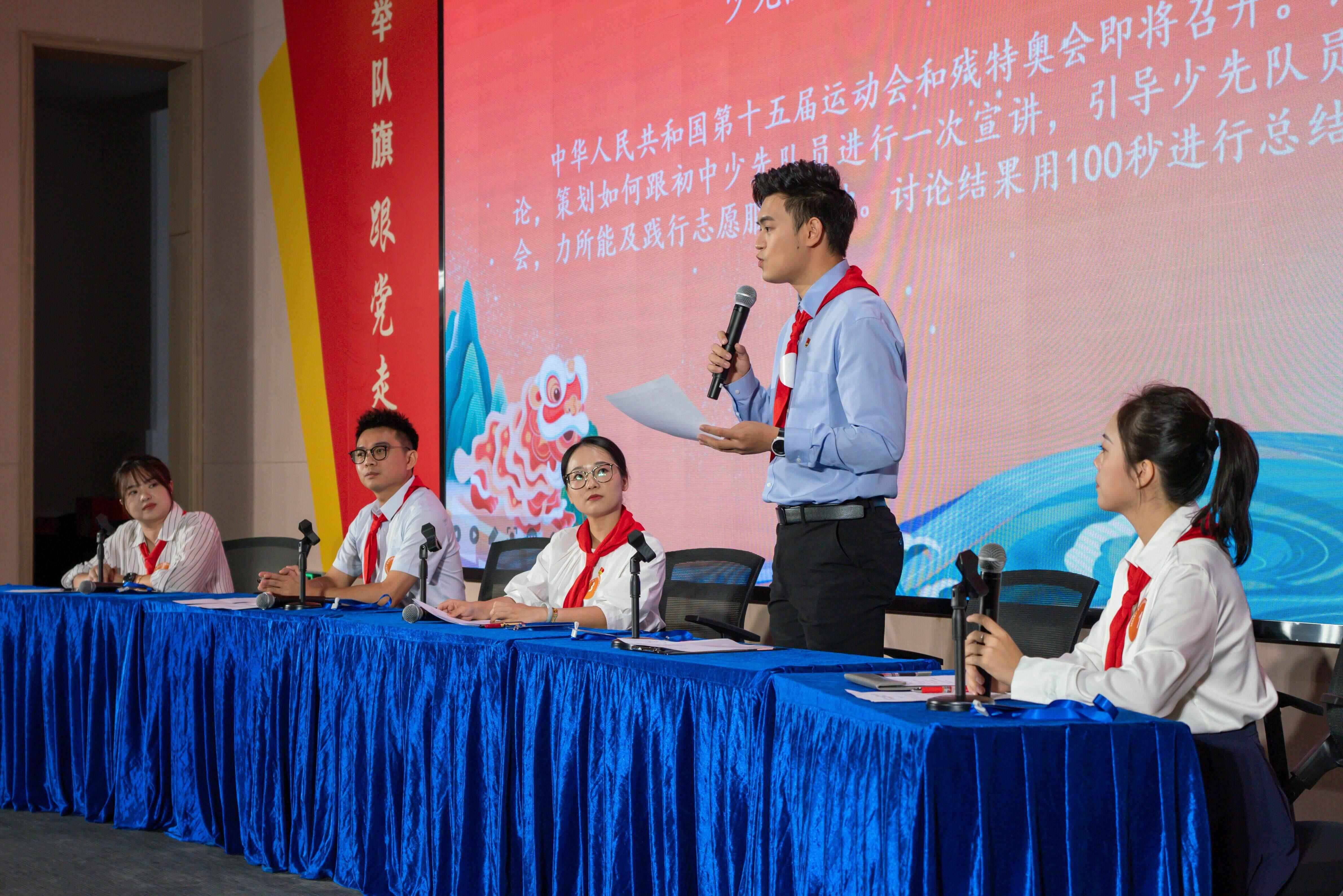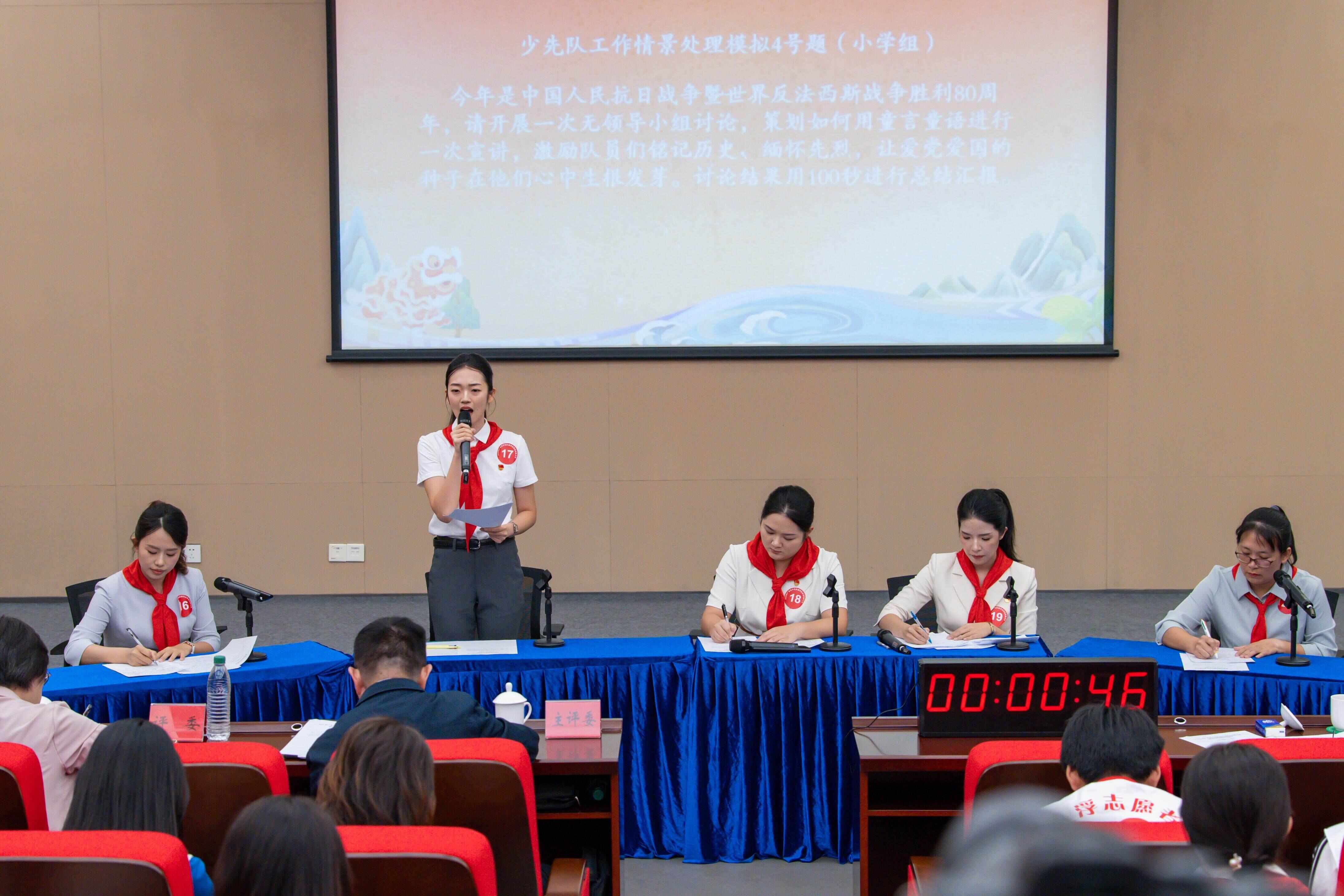 本次竞赛紧扣“落实全国九少精神,红心向党培根铸魂”主题,设置基础水平检测、少先队活动课设计、少先队工作情景处理模拟三大考核环节。