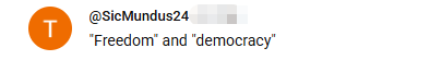 网友@SicMundus24讽刺道:“(这就是美国的)‘民主’与‘自由’。”