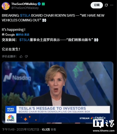 特斯拉董事会主席罗宾·德霍姆近日暗示,公司或将很快推出“更多几款车型”。尽管具体车型尚未明确,但特斯拉近年来已多次释放信号,预示未来几年可能有多款新车型面世。10月7日,特斯拉推出了Model 3与Model Y的“标准版”车型,这些版本相较于现有“高级版”更为精简,取消了部分高端配置。德霍姆所指的“即将推出的新车”可能正是指这些正在逐步投放市场的新版本车型。