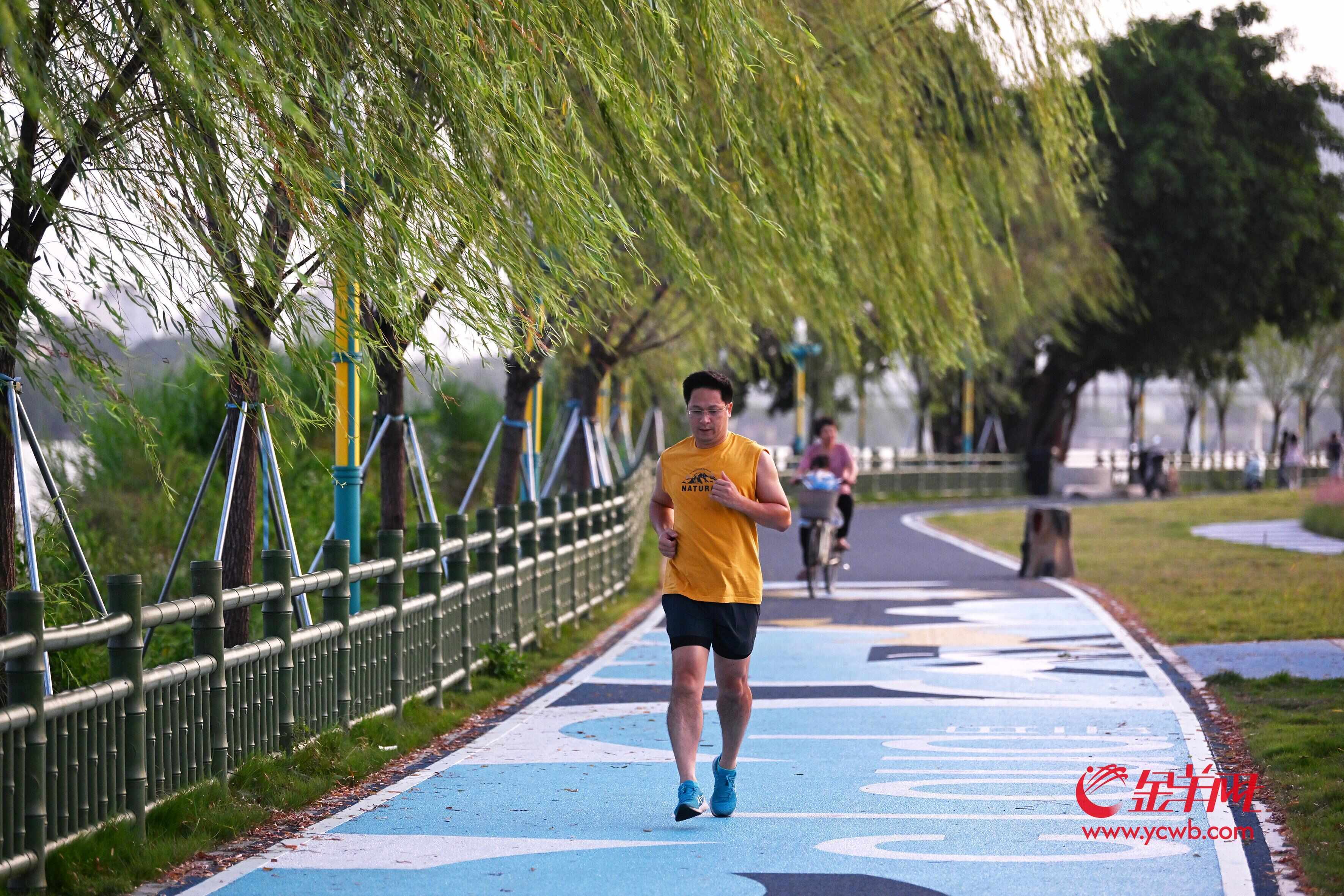 如今,那条环岛碧道犹如一条湛蓝丝带,5.4公里长的彩色沥青路面科学实现了人车分流。沿途,休息区、观景台巧妙串联,更精心设置了观赏韩江日出日落的绝佳“打卡点”。数百株新植的蓝花楹静待繁花满枝、蔚然成荫;四座亲水平台探入粼粼波光,邀请人们在此奔跑、漫步,尽情感受江风的轻柔抚慰。