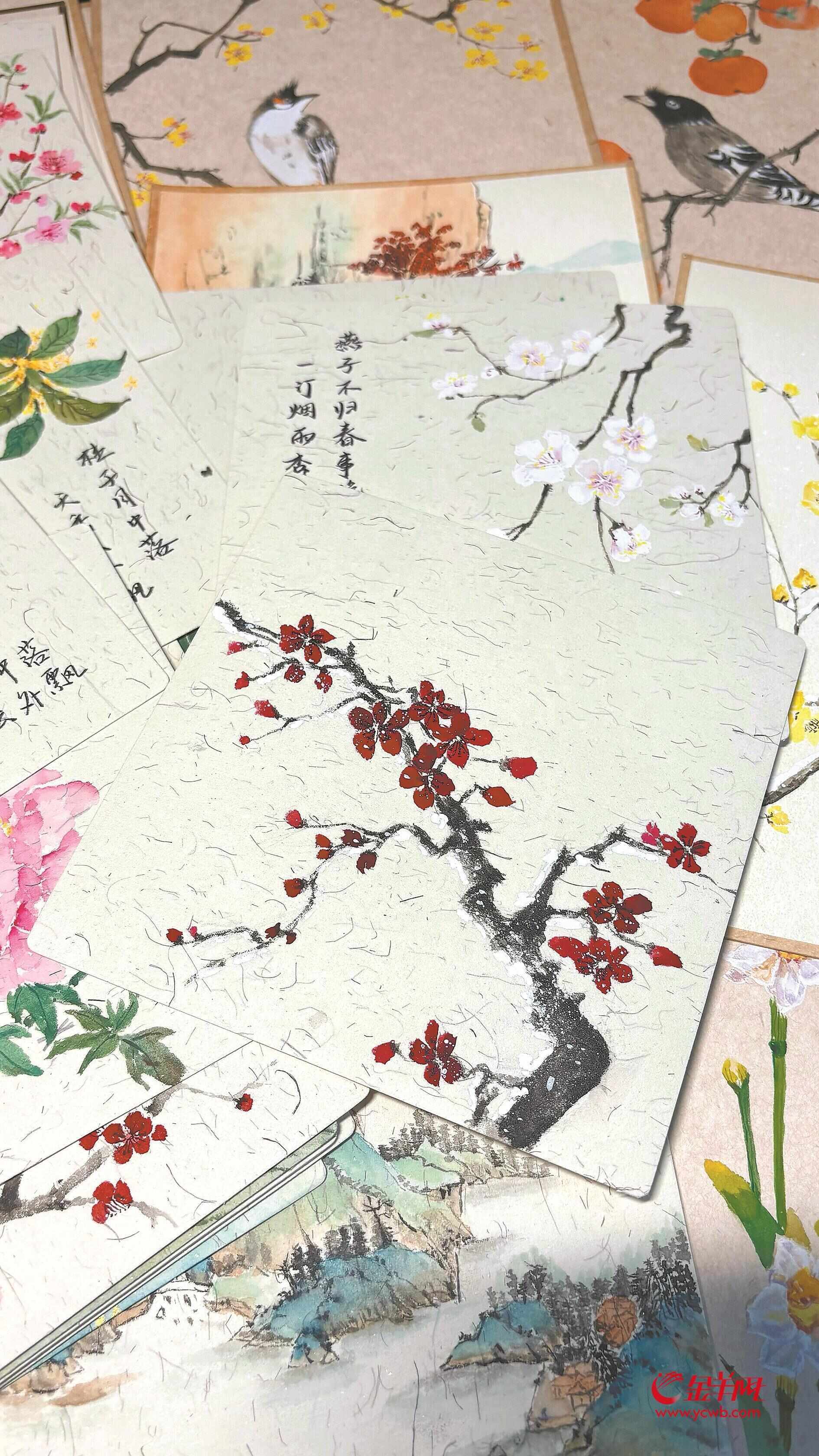 红梅原是一名纽扣设计师,这场意外让她四肢瘫痪,更别提拿笔作画。随着康复治疗的推进,她开始重新接触艺术。“上学时学的是设计专业,从事纽扣设计这工作,则是因为小时候接触很多扣子,长大后发现扣子有很多神奇用法,并喜欢上了它们的多元素设计。”红梅回忆。受伤后,她通过微博临摹学习水彩画。2023年,一次偶然的机会,越秀区残联看到了红梅的水彩画,于是就邀请她参加了区里举办的水墨丹青画活动,并通过10个月的课程,实现了她学习水墨画的心愿。
