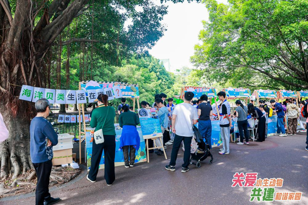 现场最热闹的要数互动市集。市民们不仅可以参与问答闯关赢取精美文创奖品,亲手体验动物彩绘,化身“古生物学家”一探奥秘,还能在物种展示专区,直观地看到各类水生野生动物活体和标本。这让人们轻松打破了“只闻其名、不见其形”的认知壁垒。
