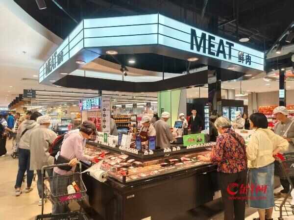 这家新店全场采用低矮货架搭配渐进层级式大货架端,配合更宽敞的通道设计,营造出开阔舒适的购物空间。商品结构上特别强化了生鲜品类,尤其是美食专区占比显著提升。为提升消费体验,还专门设置了近50个座位的就餐区,方便顾客即时享用购买的美食。