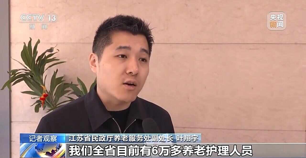 江苏省民政厅养老服务处副处长 叶翔宇:我们全省目前有6万多养老护理人员,还存在一定的缺口。养老护理人员的专业化、职业化素养还有待进一步提升。养老服务面临的主要问题是老年人日益增长的养老服务需求和专业化养老服务供给不平衡、不充分之间的矛盾。