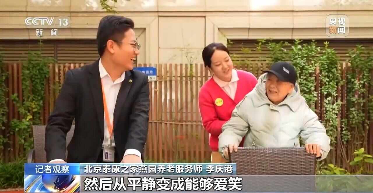 北京泰康之家燕园养老服务师 李庆港:认知症照护没有止境。现在我能够做到的是让他们从激越变为平静,然后从平静变成能够爱笑。我希望通过我们专业的服务,然后去对抗疾病的橡皮擦,让它去发展得缓慢,减少他们日常生活当中的冷漠和痛苦,让他们能够更多地获得快乐。