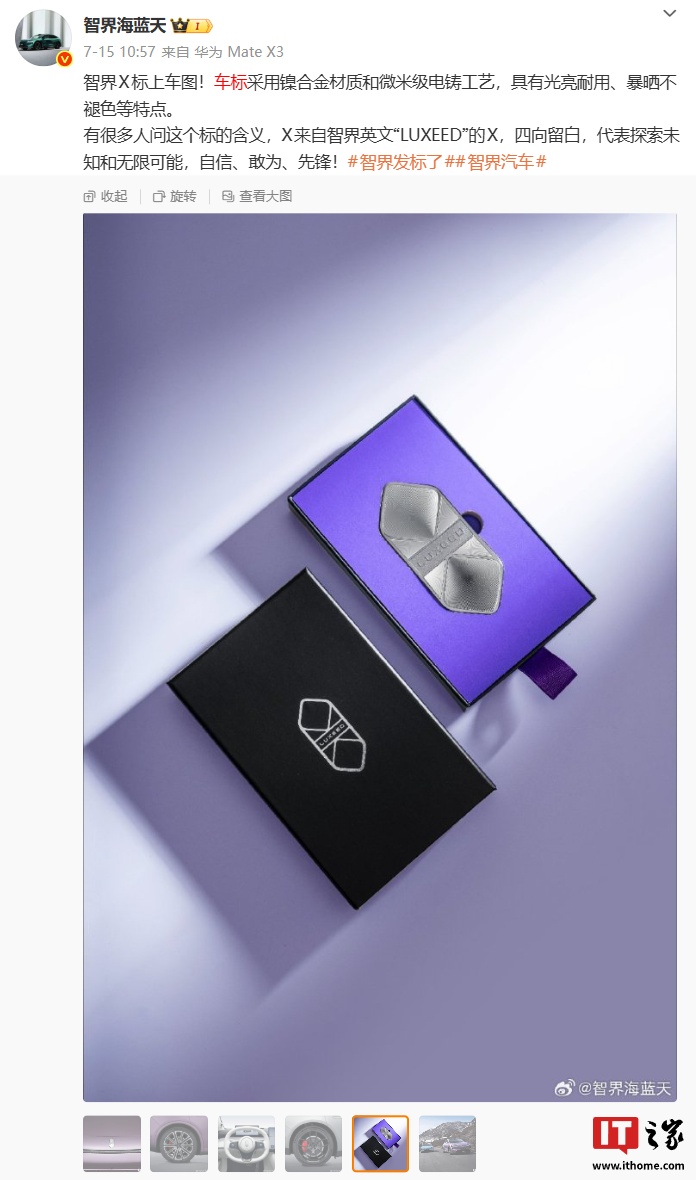 智界汽车轮毂车标的亮相,是继今年7月15日鸿蒙智行智界汽车X车标焕新亮相后的又一动作。当时,智界汽车官方微博更换了车标LOGO头像,并开启了智界品牌标识纪念品免费赠送活动,R7/S7全体车主从7月27日起分批次领取。这次轮毂车标的免费领取,进一步丰富了智界品牌的标识体系,提升了品牌形象。