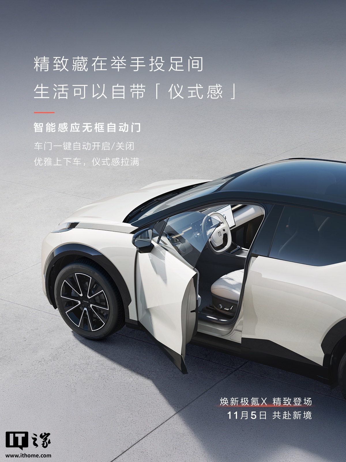 11月4日,极氪汽车官方公布了焕新极氪X的内饰官图,并宣布新车将于11月5日正式发布。内饰整体风格延续现款车型,新增电动滑移智慧屏、4D云端零重力座椅、调光天幕等亮点配置,提升了科技感和舒适性。外观方面,新车保持现款设计,新增哑光绿车漆颜色,并采用分体式大灯设计,车身线条动感,配备隐藏式门把手、充电口、无框车门和后视镜。