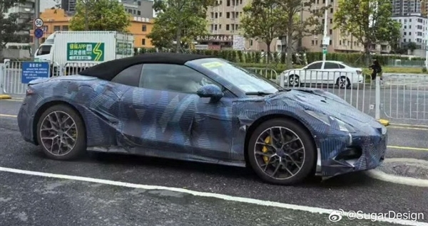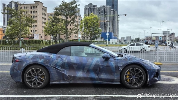 腾势Z在性能配置上表现出色,采用明黄色刹车卡钳,以及“前后后置、后轮前置”的布局,旨在平衡制动稳定性、操控精准度与散热效率。整车造型低趴,前机舱盖上方设有风道开口,配备无框车窗和黑色软顶篷布,增强了车辆的可玩性。