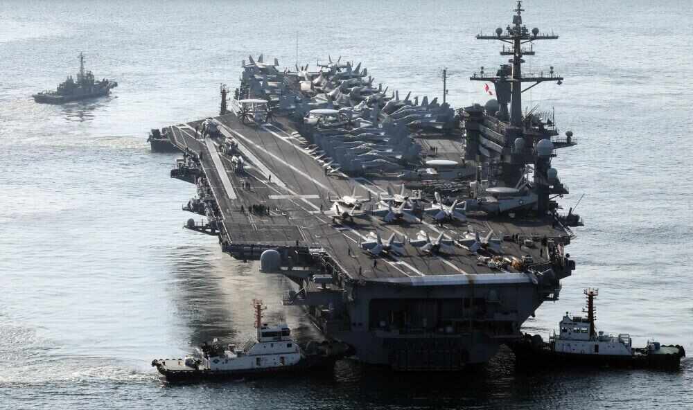 11月5日,美国核动力航母“乔治·华盛顿”号抵达韩国釜山港。 新华社/纽西斯通讯社
