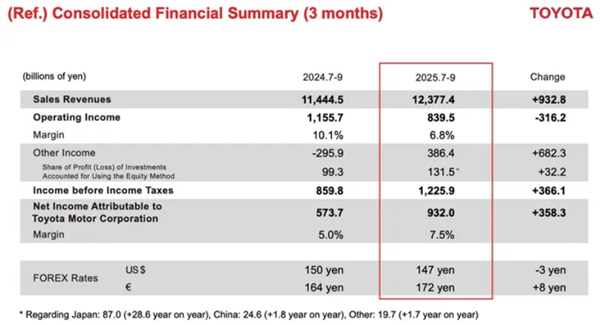 日前,丰田汽车公布了2026财年第二财季业绩报告。财报显示,公司当期营收达12.38万亿日元,同比增长8%;但经营利润同比大幅下滑27%,从去年同期的1.16万亿日元降至8395亿日元。这一利润下滑主要受到美国关税调整和汇率波动的影响,其中美国关税调整单季直接造成4500亿日元损失,汇率波动对营业利润的负面影响达2100亿日元。