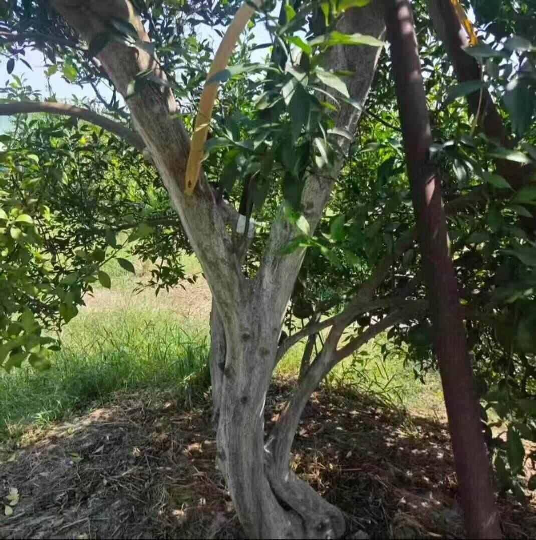 走进双水镇桥美村的柑园,记者见到,三棵挂果的油皮仔老树格外醒目。树干皲裂如老龙鳞片,而树冠却依旧枝繁叶茂,青黄相间的果实挂满枝头,透着勃勃生机。“这三棵树是知青时期前就栽种的,后来从附近水库边移植到这里,算是新会现存最老的一批油皮仔柑树了。”守护老树多年的果农佳叔介绍,即便树龄已超70年,这些老树每年仍能稳定结果,且产出的果实品质堪称顶级。