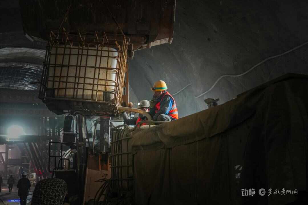 盘兴高铁全长约99公里,桥梁和隧道总长接近90公里,全线需建设46座桥梁和38座隧道。在妥乐隧道施工中,建设者遭遇了直径达68米的溶洞,上下高差100米,最终采用桥梁桩基结构进行强化处理。保田隧道更是遭遇67处空腔型溶洞,施工团队不得不频繁停工研判,应对涌水、坍塌等风险。