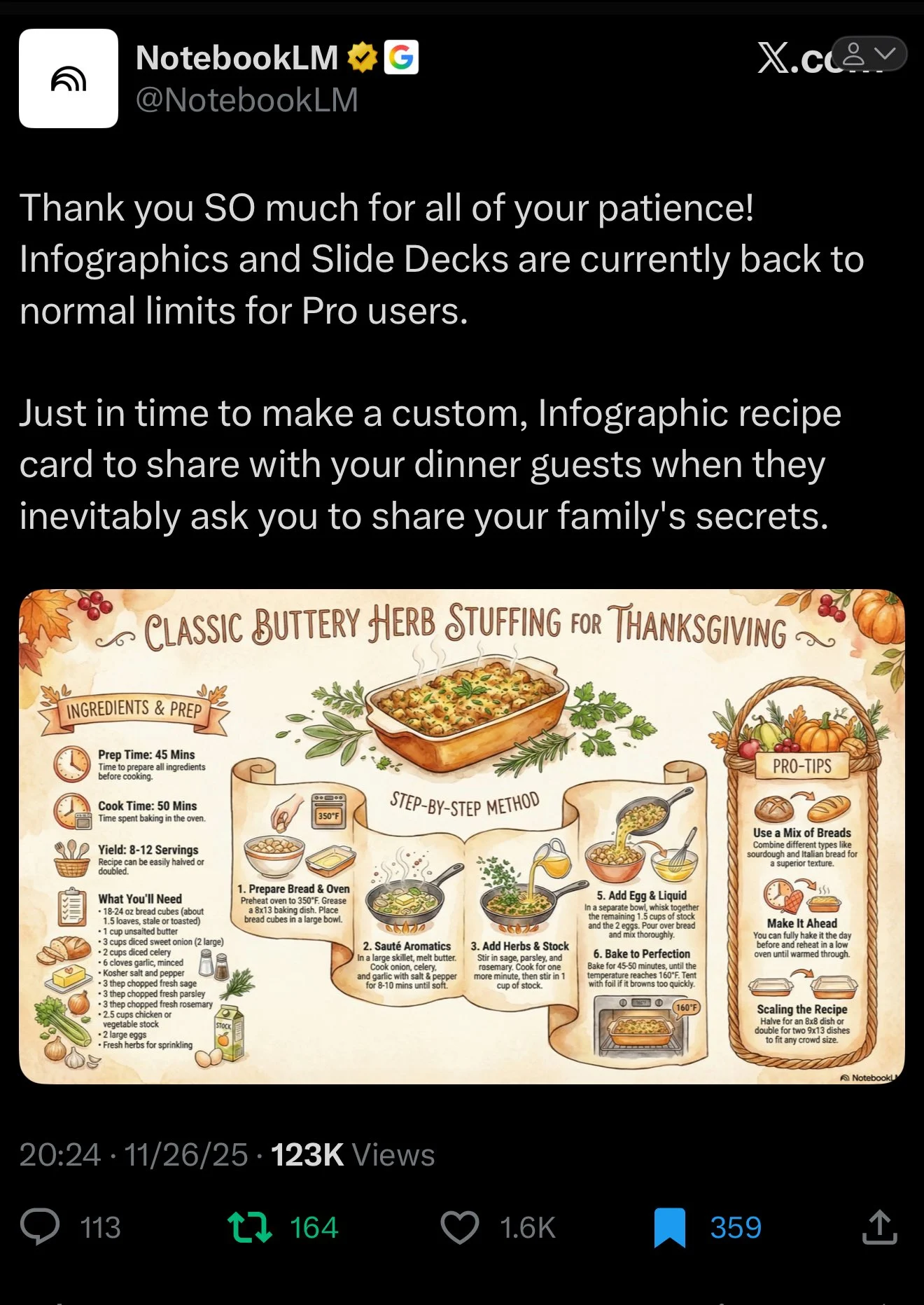 12月1日,科技媒体bleepingcomputer报道了谷歌NotebookLM团队因AI抄袭而陷入公关危机。谷歌NotebookLM团队发布了一张AI生成的“经典黄油香草填料”食谱信息图,旨在推广其图像模型NanoBananaPro及图表制作能力。然而,该推广内容被指控直接剽窃了内容创作者的成果,导致谷歌不得不紧急删帖。
